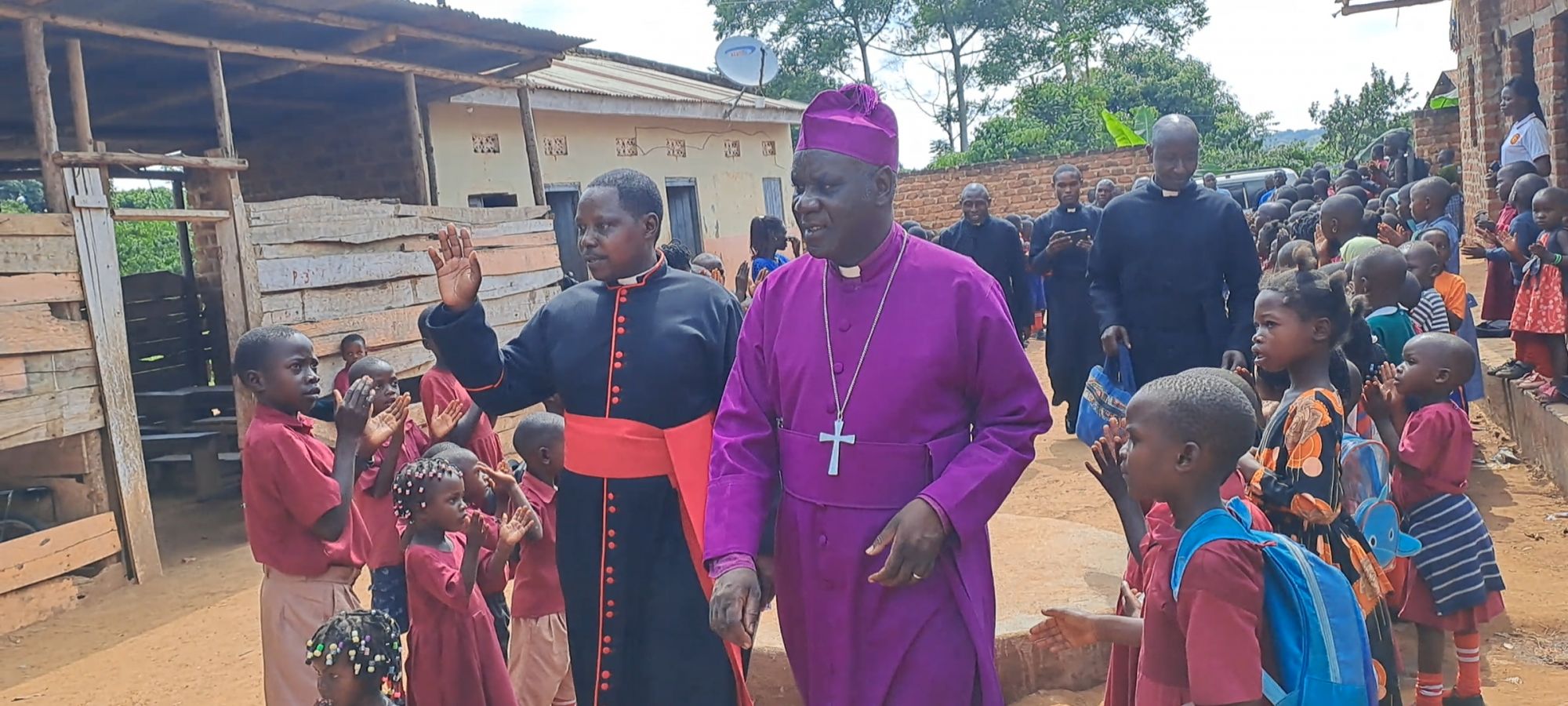 Der nächste Tag beginnt früh. Meine ugandische Kollegin Rose-Mary wartet bereits vor dem Gästehaus, und unser Fahrer sorgt dafür, dass wir rechtzeitig zum Schulgelände kommen. Schon bei der Ankunft ist die besondere Stimmung spürbar: Die Kinder tragen ihre Schulkleidung, und Lehrkräfte, Eltern und Gäste sind versammelt, als der Bischof mit seinem Stab eintrifft, um die Feier als höchste offizielle Autorität zu eröffnen.
