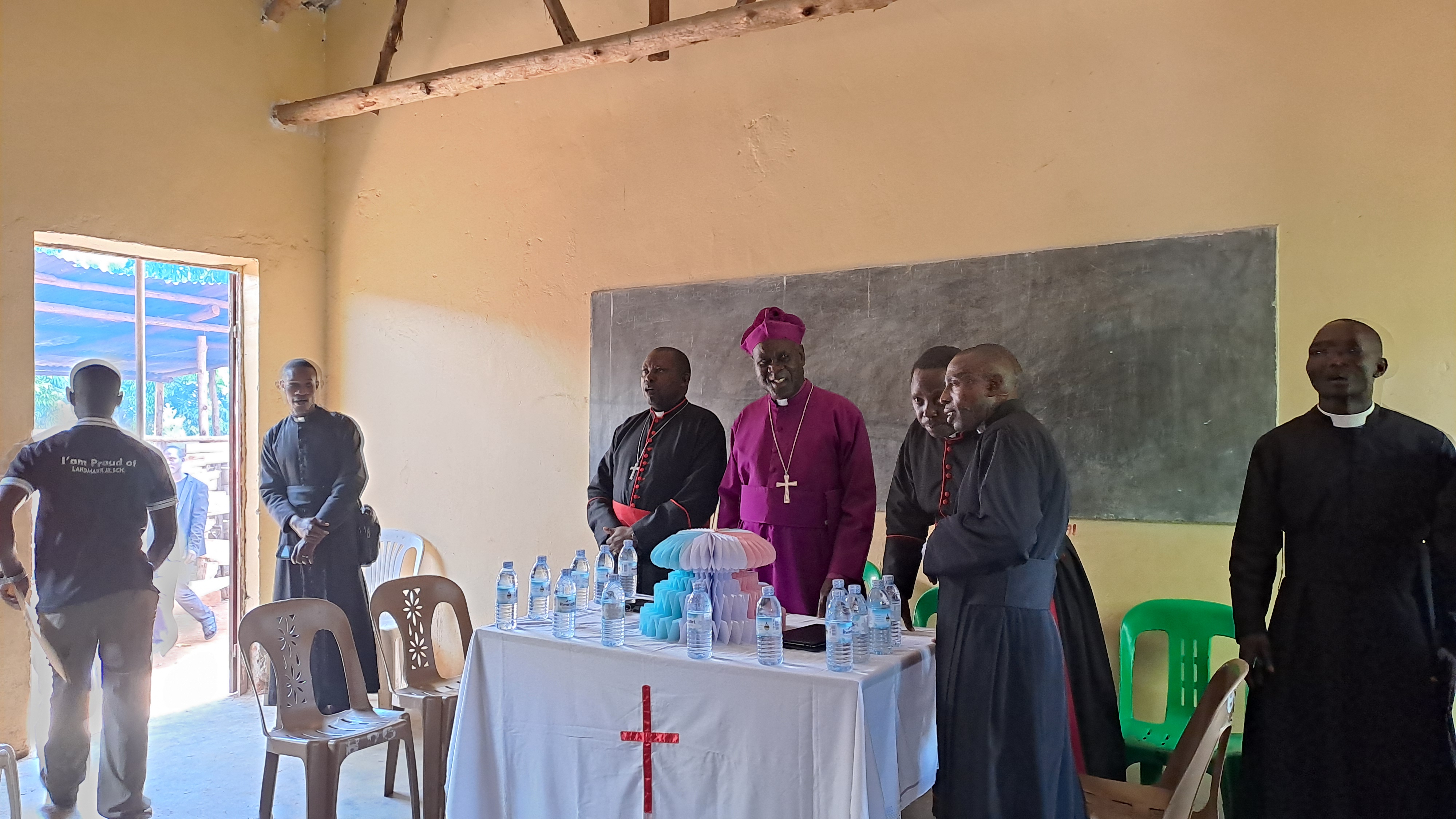 Die Zeremonie beginnt feierlich: Der Bischof eröffnet die Veranstaltung, spricht ein Gebet und betont die Bedeutung von Bildung für die Gemeinschaft.