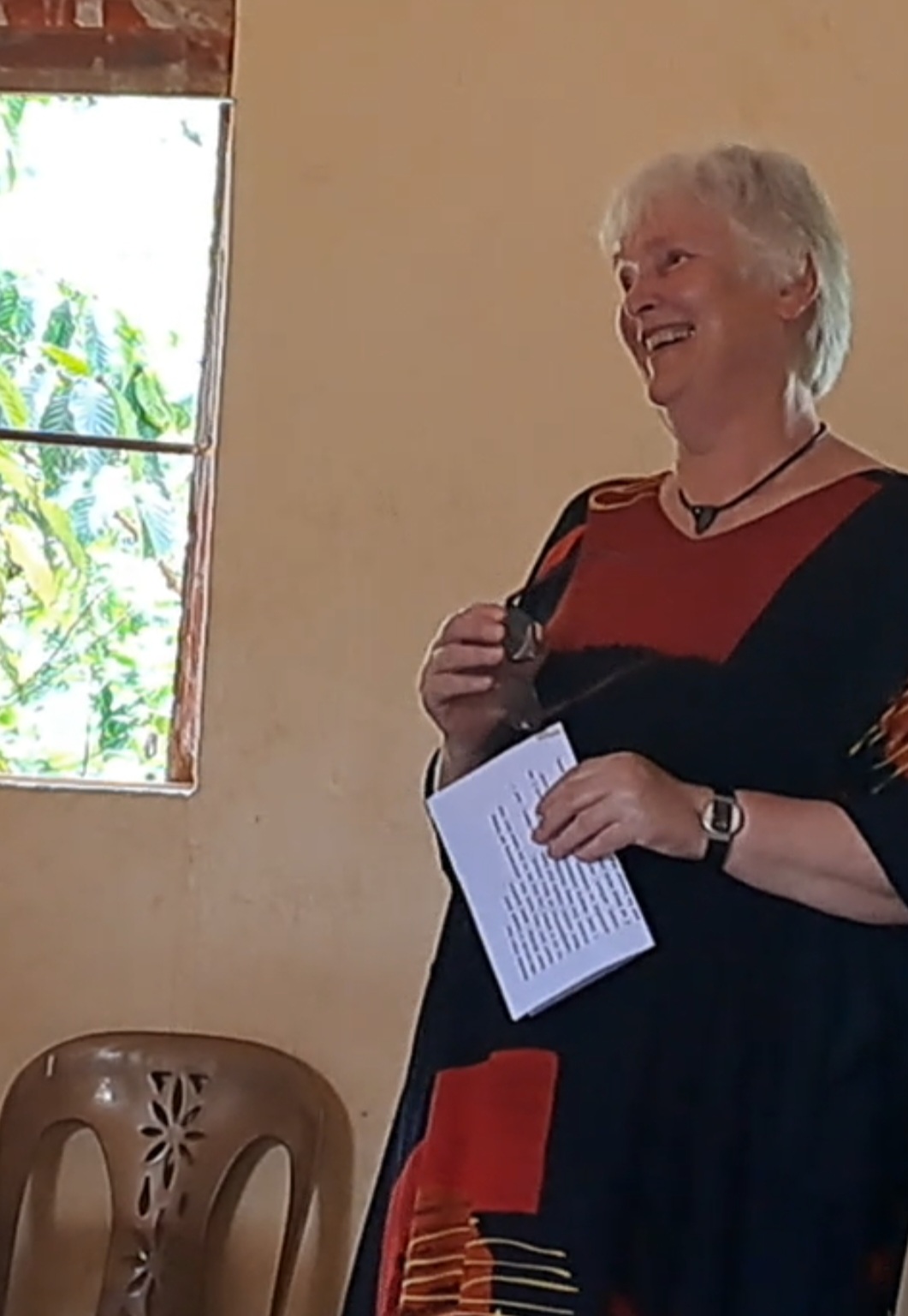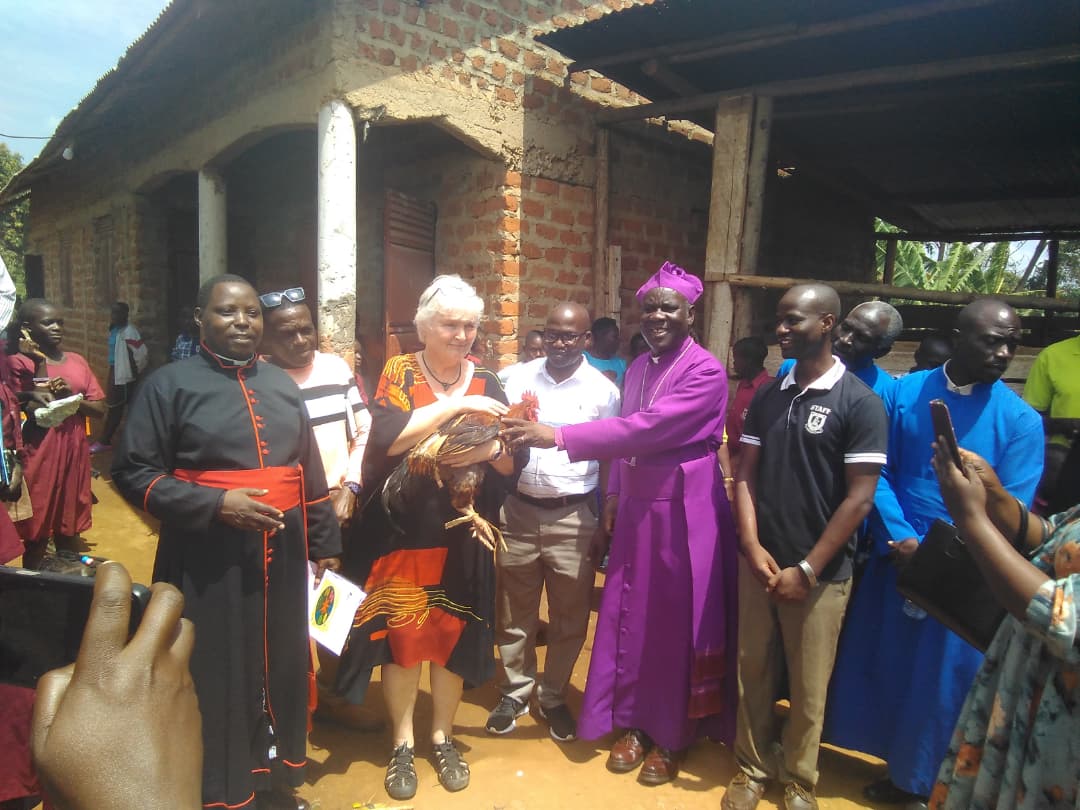 Der Bischof und sein Team stehen im Mittelpunkt der Veranstaltung. Gleichzeitig nehme ich als Vertreterin unseres Vereins und des Hauptsponsors eine besondere Rolle ein. Zum Abschluss werde ich - als Zeichen der Anerkennung - mit Geschenken der Gemeinde bedacht: zwei Hühner und mehrere Ananasse – eine Geste, die mich gleichermaßen überrascht und berührt.“