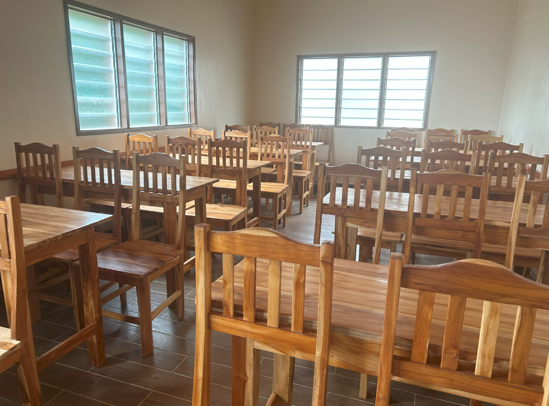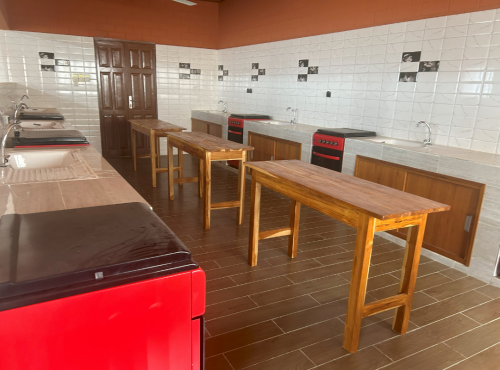 Im August waren Andrea Bastian und Mathias Wodome vom Vorstand des deutschen Vereins zu Besuch in Togo und konnten ein sehr professionelles Ausbildungszentrum bewundern. Die Aufstockung des Gebäudes mit der großen Lehrküche mit 20 einzelnen Arbeitsplätzen, zwei großen Klassenräumen und einem Lagerraum war fertiggestellt. Die bereits bestehende Solaranlage wurde mit besseren Batterien ausgestattet und versorgt nun das gesamte Zentrum komplett mit Strom.
